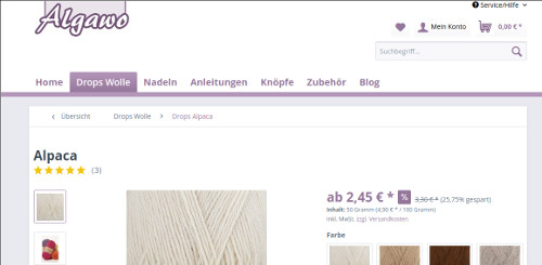 Dropsgarne est un site Allemand, la qualité de laine est superbe, en revanche il n'est disponible qu'en Allemand, il n'y a pas de version Française.